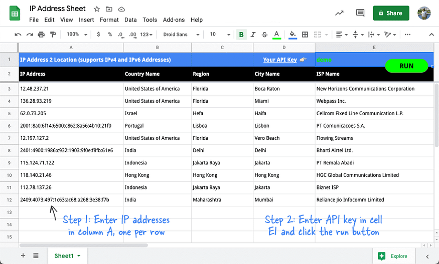 It’s also the best method for performing IP address lookups with Google Sheets.